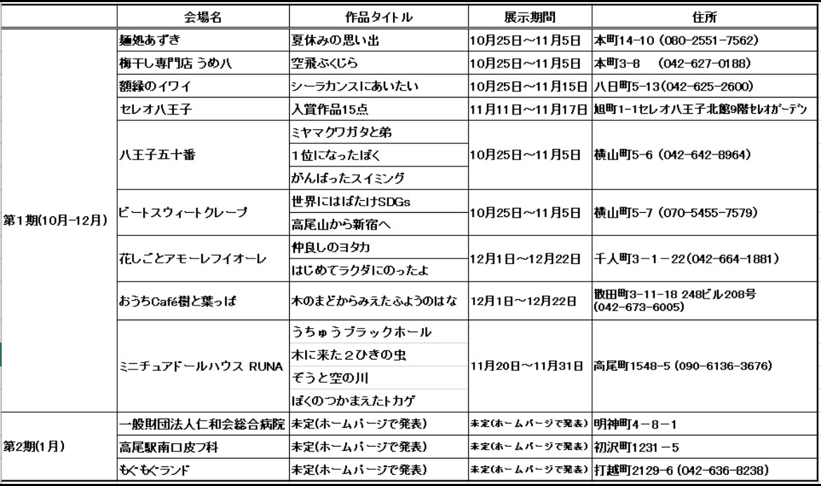 作品の返却は、11月30日(日)11:00-12:00 セレオ八王子にて